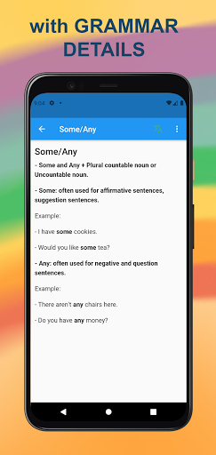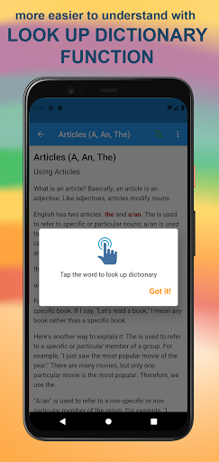 - Dictionary lookup by tap the word for more easier understanding English Grammar