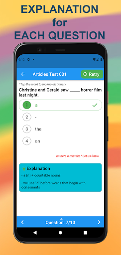 ★ This app covers 12 000 English grammar test questions, using simple explanations, many examples, and fun quizzes.