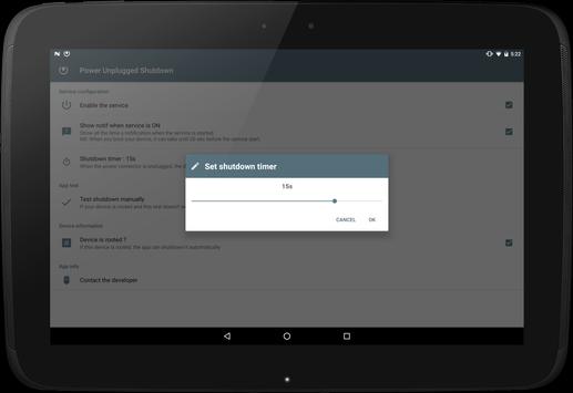 With this app you can shutdown your device automatically when the power down!