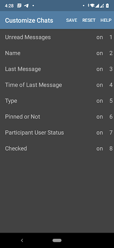 - "Customize Chats" menu to personalize what info and in which order, should be read for a chat row inside chat list.