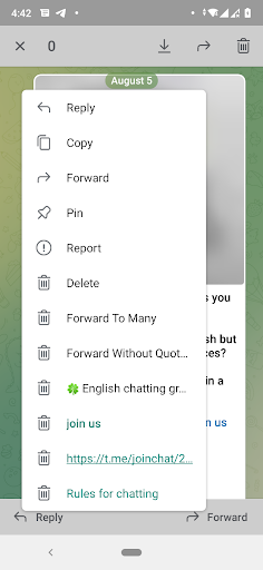 - "Forward without quote" button. Hides the source your are forwarding from and you can edit the message. A must have for channel admins!