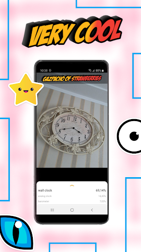 The application, using a neural network, is able to classify images into thousands of categories! Just point the camera at any object)