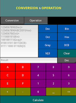 Convert-Oper is an app that can help you convert from your chosen number to Decimal, Binary, Octal, DCB and MJ3. And mostly, it help you make some operation with them.
