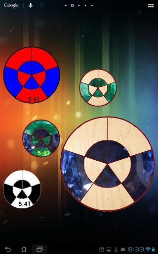 The colors used to indicate 0 and 1 are configurable; there are a couple of flat color choices, a few based on gems, and simple black-and-white to accommodate colorblindness.