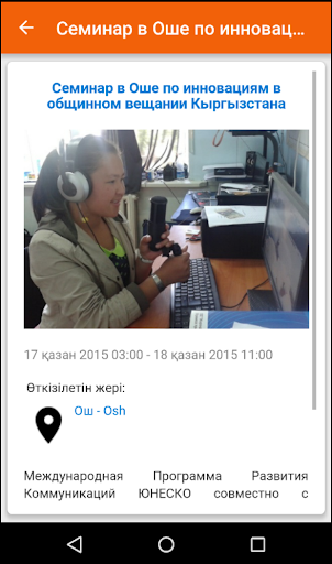 This mobile application was created in the framework of Kyzylorda joint programme and developed by UNESCO Communication and Information Unit in cooperation with the Government of the Republic of Kazakhstan, the Ministry of regional development of the Republic of Kazakhstan, Akimat of Kyzylorda oblast and six organizations of the UN system – UNDP, UNICEF, UNESCO, UNFPA, WHO and UN Women to enhance well-being and quality of life in the Kyzylorda region through innovative approaches by delivering economic, social and environmental services to local population, particularly the most vulnerable parts of the population.