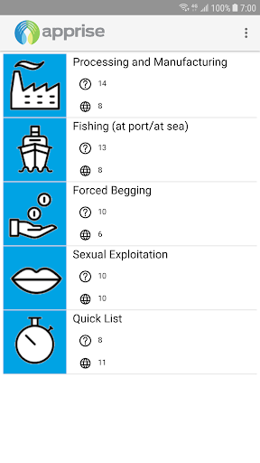 problems communicating with migrant workers due to the large number of languages spoken; different understandings of indicators of human trafficking across key stakeholders; lack/mistrust of interpreters; and migrant workers’ fear of reprisals for speaking out. Moreover, mobile phones were then almost unanimously identified as providing a viable platform that could be used to support communication, and to provide a simple means to identify human trafficking victims. While victims themselves often did not have access to mobile phones, participants noted that frontline responders almost universally have access to mobile phones. Therefore, this research proposes having an application on the frontline responders’ mobile phone as a potential facility to enable workers in vulnerable situations to self-identify and seek help; allowing them to bridge the language divide, and work with a common understanding of the indicators of human trafficking. Given the wide variety in types and forms of human trafficking and exploitation, this project covers diverse scenarios, including: forced labour (both on fishing vessels and in manufacturing premises), sex trafficking, and child begging.