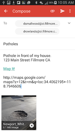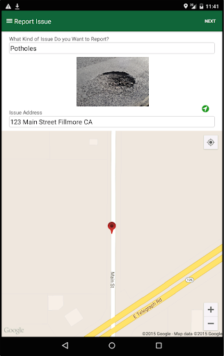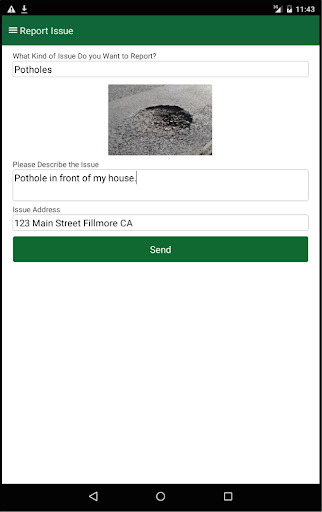 Use this app to take a photo of the issue, and then send it directly to the correct administrator at Fillmore City Hall.