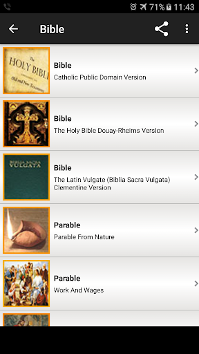 At the current, we have 3 versions of Bible and 5 topics of Parable: