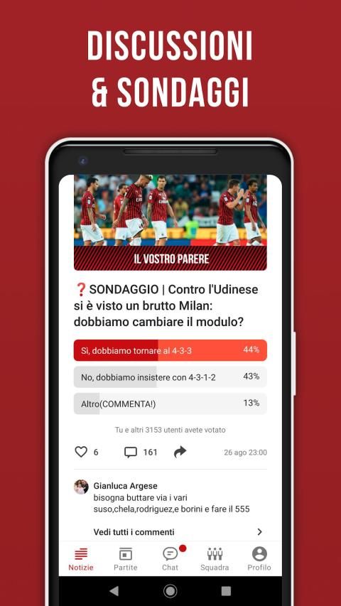 √ Grande community di fan: match chat, commenti e discussioni dal vivo,