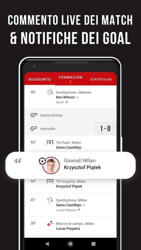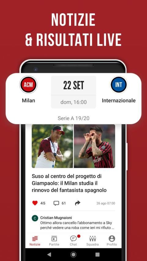 Get everything on Milan in an instant! From the latest news to the best editorial articles, from the LIVE match commentary, to the match schedule, from the results to goal notifications - all the important information for a true Milan fan!