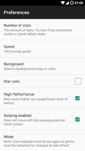 Please note: Only the stars move, the galaxy in the background is a static image you can choose in the app.