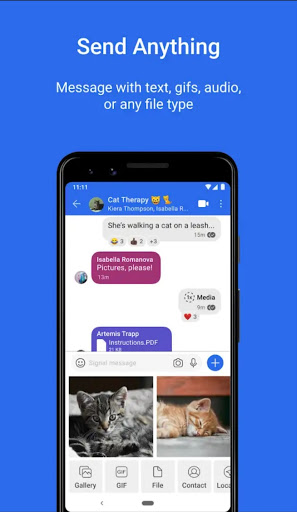 • Say anything – State-of-the-art end-to-end encryption (powered by the open source Signal Protocol™) keeps your conversations secure. Privacy isn’t an optional mode — it’s just the way that Signal works. Every message, every call, every time.