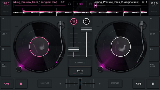 - Real cross fades with two virtual turntables