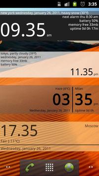 - World clock with timezone support (just add multiple widget and set manually weather/location in the options)