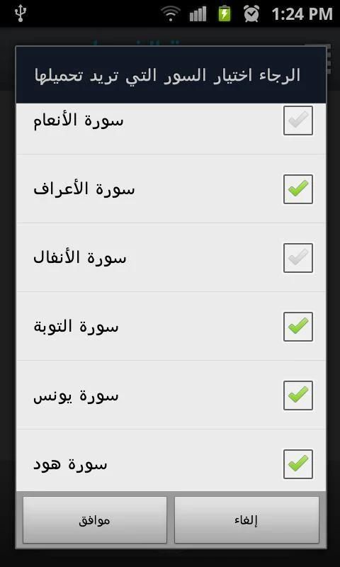 إمكانية تحميل سورة واحدة فقط او عدة سور