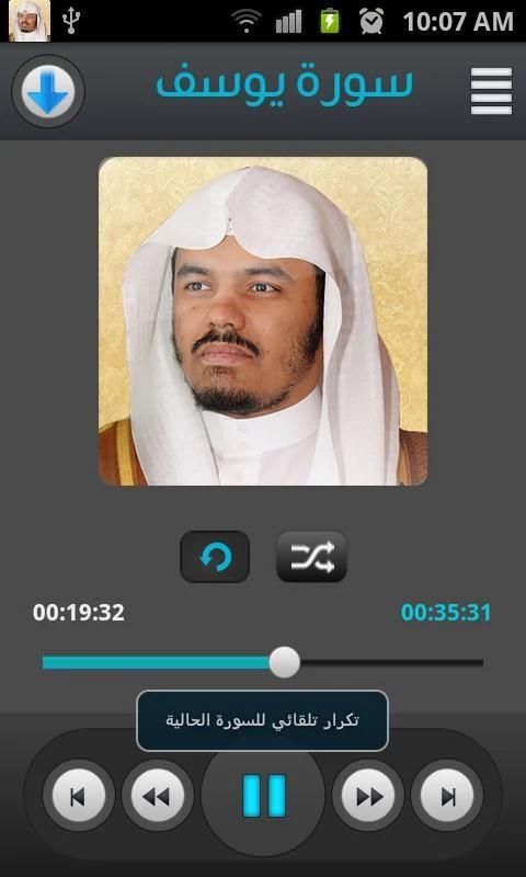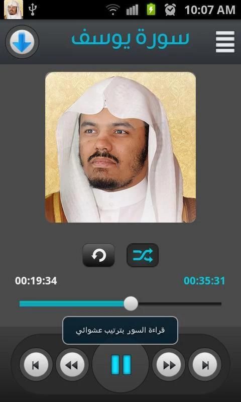 تحميل السور على الجهاز٫للاستماع للتلاوة دون الاتصال بالانترنت