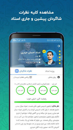 نظرسنجی از تمامی شاگردان استادبانک: با مشاهده نظرات شاگردان در پروفایل هر استاد، می توانید اطمینان بیشتری نسبت به انتخاب معلم مورد نظرتان پیدا کنید.