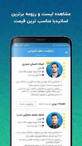 قابلیت مشاهده لیست اساتید خصوصی برتر ایران در مقاطع ابتدایی، متوسطه، کنکور، دانشگاهی و زبان های خارجی