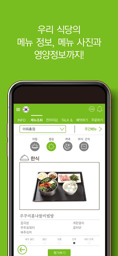App móvel, que fornece as informações do menu da casa de alimentos, e as informações do menu do arrendamento e o aplicativo móvel que fornece o serviço mais fácil de pagamento (reserva / pedido de encomenda).