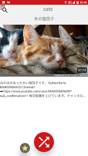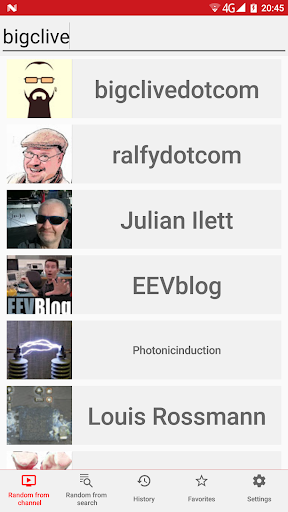 This app allows you to find random videos from your favorite channels or search keywords. It allows to play them in full screen instantly using official app.