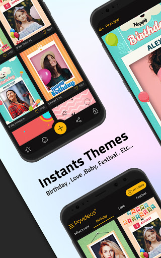 Packed with cool and realistic themes, P9videos’ birthday video maker offers a modern day feel to the birthday greetings. Let your loved ones feel extra special on their big day. Add templates, music, make videos, slideshows with photos and music, Instant 30 sec Status Video Maker, Status customization characters and design it the way you want it to. Try it out soon! It’s totally free.