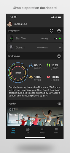 •Personalized health goals, such as cadence, sleep, calories- burn time.