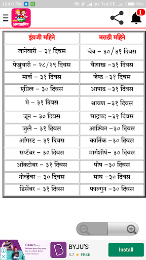 मराठी व इंग्रजी महिने ,