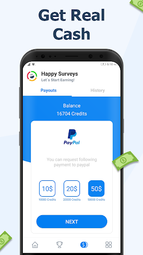 Your mobile mini-job is not only easy but also fun, make money with surveys now. Real cash is waiting for you! Be smart and earn money with a survey! Happy Surveys is leading the way for survey apps that pay cash.
