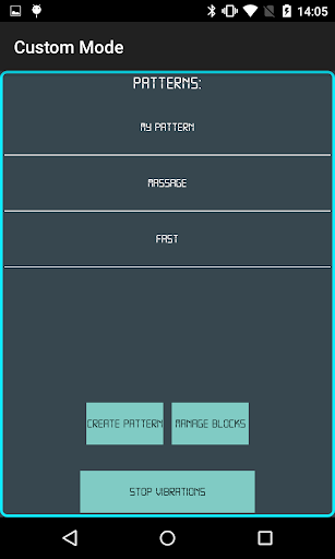 Customizable Massager is an application that allows you to control your device vibrations. What makes it special is the fact that you can create your own vibrating patterns. It also provides a set of pre defined patterns for you to use. You can also turn the screen off and allow the device to vibrate as long as application is running. Customizable Massager can be used as a massage application to relax tired muscles or it can be used for other kinds of pleasures. Enjoy your own customizable massaging vibrations!!!
