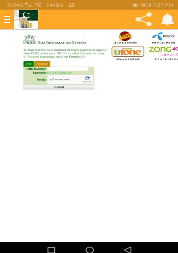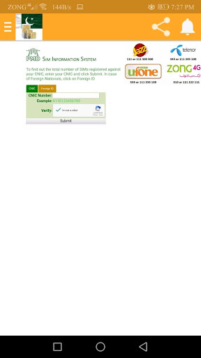 In SIM verification: Pakistan app you can get information about number of SIMS registered on any CNIC. Just enter CNIC and check number of SIM registered on your CNIC. SIM Verification Pakistan app will show you that how many SIMs are biometric verified on your CNIC.