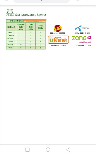 - check number of registered sims against your CNIC