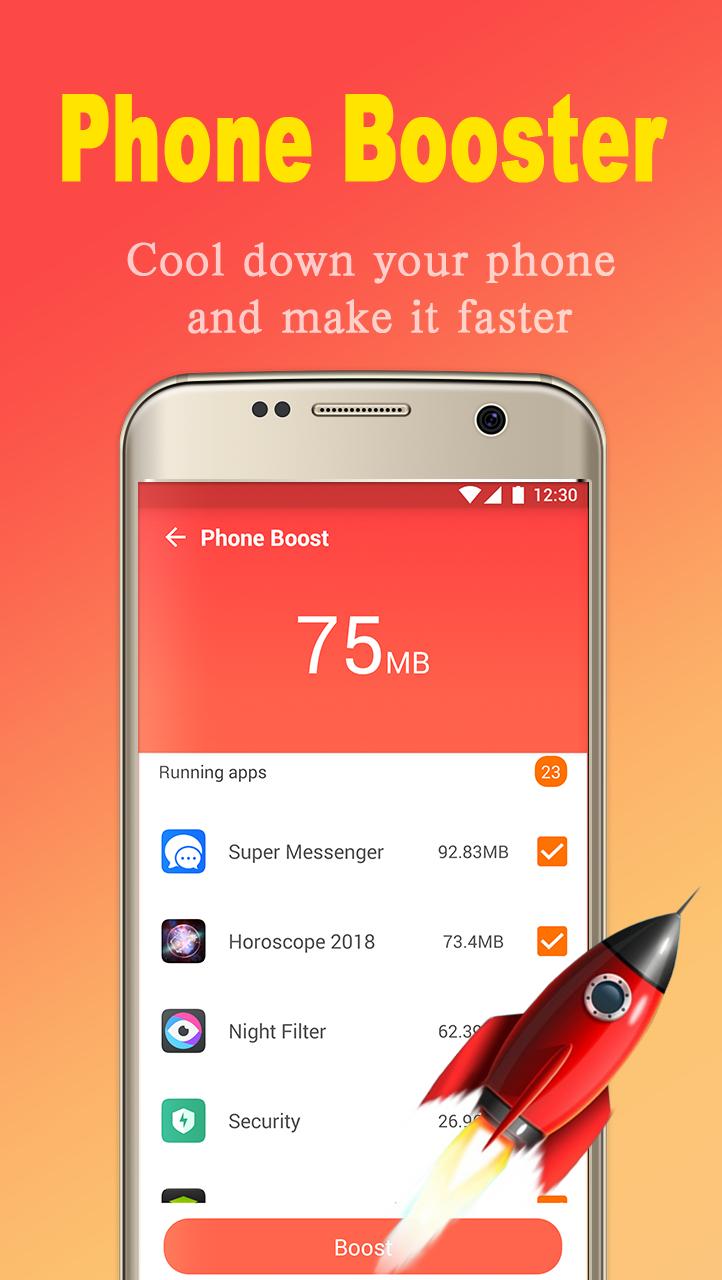 clean up all the junk files and cache from your phone,enlarge storage space with one single tap.speed up device by stop unnecessary apps.