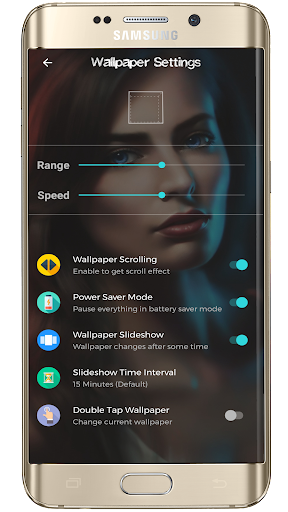 * Choose wallpapers from gallery of the phone and adjust a show slide with effect of Parallax.