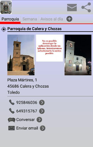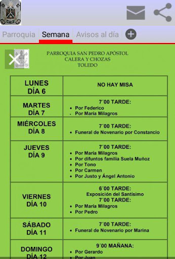 Aplicación oficial de la Parroquia de San Pedro Apóstol en Calera y Chozas (Toledo) - España. Para estar informado de todo lo que acontece en tu Parroquia (misas, funerales, entierros, fiestas, hojas parroquiales,etc) y también información de la Iglesia en general