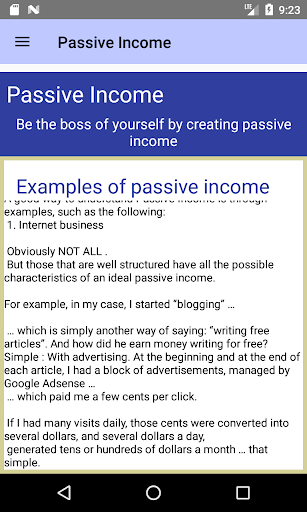 In this app you will learn: what is passive income, why it is so important, wonderful examples of life, benefits of passive income, how to generate passive income, smart passive income ideas to progress immediately, smart passive income for travelers and the best passive income for beginners. Economic independence now - join us now in this great adventure - has changed your life forever.