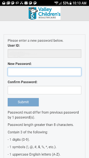 Valley Children's Healthcare Password Reset