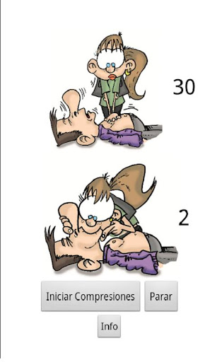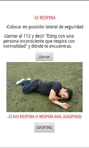 Esta aplicación muestra de forma sencilla cómo actuar ante una persona inconsciente y si es necesario, cómo aplicar las maniobras de reanimación cardiopulmonar..