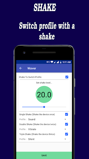Get rid of manual profile change when you drop your phone in and out of pocket or turn the phone screen upside down, waver will automatically do the job for you.