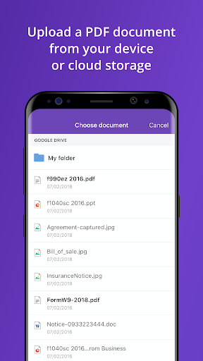 ✓Select a PDF you’d like to convert from your mobile device’s storage or upload it from Google Drive or Dropbox.