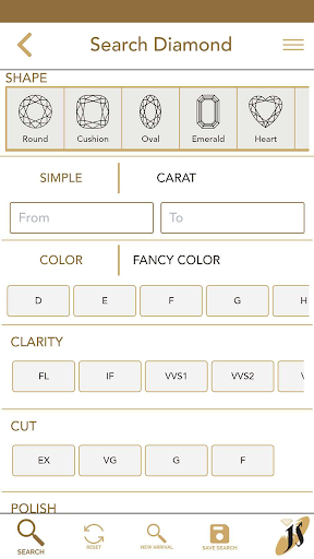 • From Search option you can choose diamonds as per your preference attribute.
