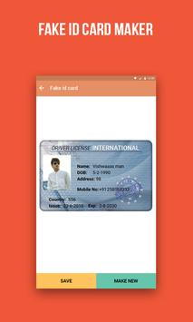 With user friendly UI, Fake ID Card Maker or Fake ID Maker is a must have prank app. All you need to do it 1st select the ID Card option and then enter all the details you want to have in your fake ID Card. Once you've done that, your Fake ID Card is ready!! Generate Fake ID easily with this app.