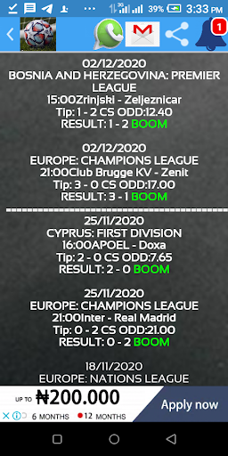 Gives appropriate correct score for football betting which makes whining easy