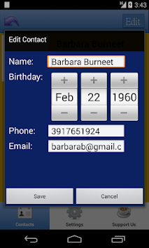 This APP gathers all your contacts from phonebook, timely remind you the birth date of your family and friends. You can always participate in their most important day with blessing. We also provide lots of setting for you to filter your best ones.