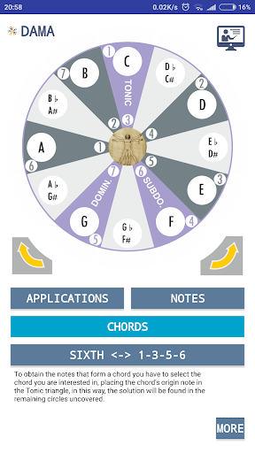 Through DAMA you will not only be able to obtain information in a direct way (transport of chords, melodies, obtaining tonalities, formation of chords, etc.). You can also understand in a simple visual and graphic way why and the logic of these formations, resulting in DAMA an essential tool when it comes to understanding music theory from its most basic concepts to the most complex structures.