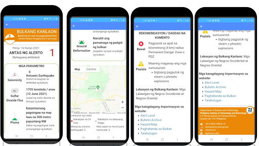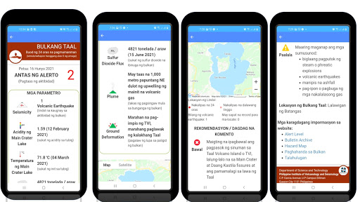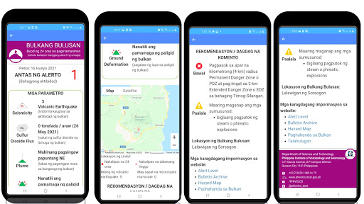 This app delivers daily 24-hour observation data of the monitored active volcanoes of the Philippines. Data are obtained by 24/7 real-time instrumental monitoring and periodic scientific field surveys and analyzed by the DOST-PHIVOLCS’ Volcano Monitoring and Eruption Prediction Division (VMEPD).