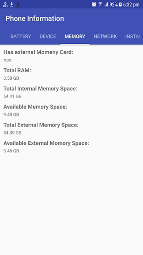 Do you want to know all information about your phone? With phone info you can get to know the information of you device, battery, memory, network etc.