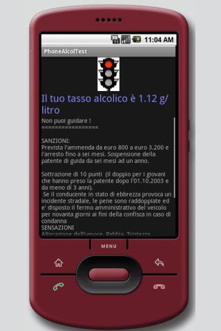 Al termine del calcolo,in relazione al tasso alcolico teorico, il programma riporta una panoramica delle sensazioni ed abilità compromesse