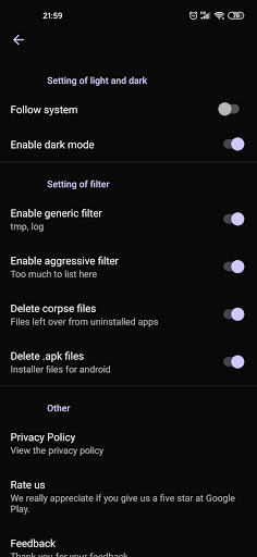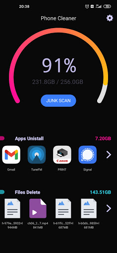 Cleaner user interface is simple, intuitive and has a dark mode, making it easy to use, easy to clean cache and junk files to free up the phone's RAM.