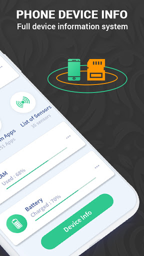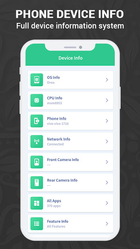 All Phone Info & Device Info is a powerful and simple android app that gives you complete information about your mobile device with advanced user interface. Device Info - Phone Info app is a full device information system or total device information system. Device info includes information about CPU, RAM, OS, Sensors, Storage, Battery, SIM, Bluetooth, Installed Apps, System Apps, Display, Camera, Thermal, etc.