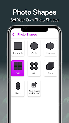 Photo Shapes: Rectangle, Circle, Hexagon, Grid, Circle grid, Stack and Circle stack